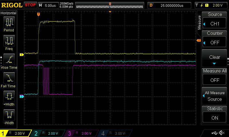 Und hier noch ein weiterer Fehlerfall, ein Kurzschluss an einem anderen Datenpin: