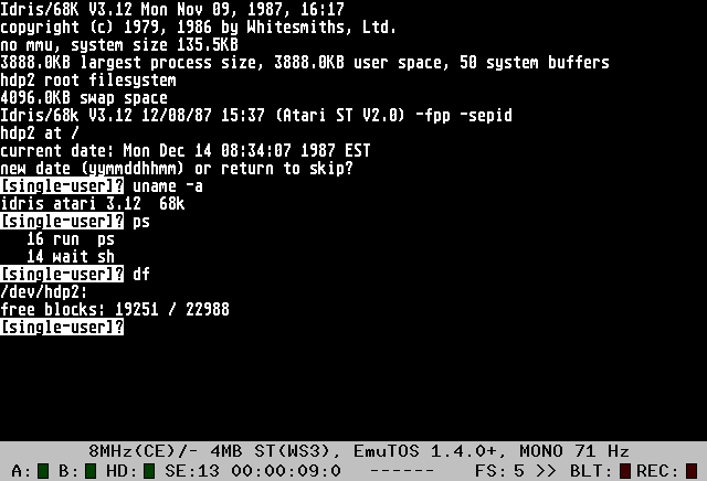 Auf der Hatari-Entwickler-Liste hat sich jemand gemeldet, der sich mit der Bewahrung eines OS beschäftigt, das ich vorher nicht kannte: Idris OS, ein Unix-Klon, den es offenbar für mehrere Systeme gab, darunter den ST. Es gibt einen Wikipedia-Eintrag https://en.wikipedia.org/wiki/Idris_(operating_system) und z.B. das ST-Magazin erwähnt es beiläufig: https://stcarchiv.de/happy-computer/1988/02/comdex